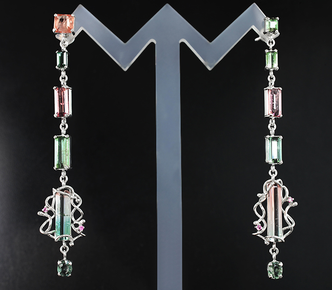 Серьги с разноцветными турмалинами 14,46 карата, зелеными и оранжевыми сапфирами