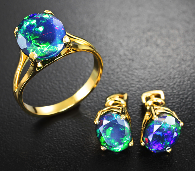 Комплект с ограненными черными опалами 5,01 карата