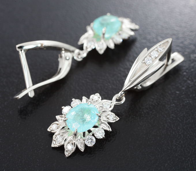 Комплект с параиба турмалинами 3,08 карата и бриллиантами