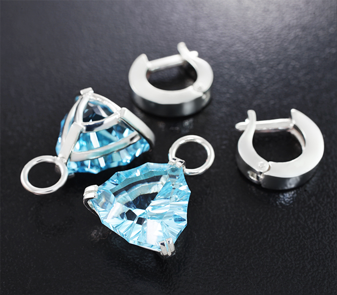 Серьги с голубыми топазами авторской огранки 17,85 карата
