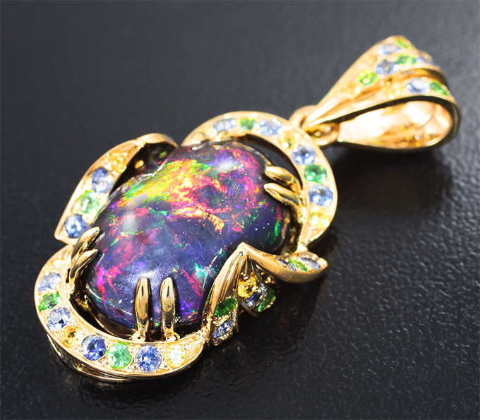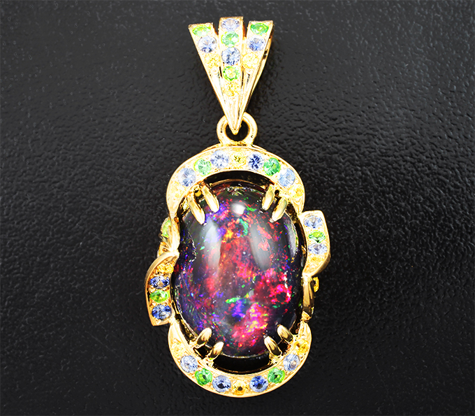 Комплект с кристаллическими черными опалами 22,22 карата, сапфирами и цаворитами