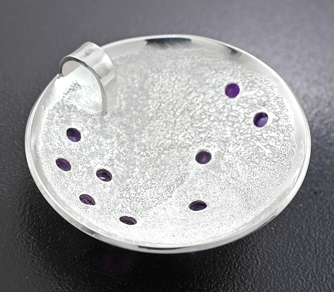 Вашему вниманию предлагается кулон из стерлингового серебра (925 проба) с хакманитами! Диаметр площадки 40 мм. Вес изделия 14,6 г. Ниже приводятся ювелирные характеристики вставок.