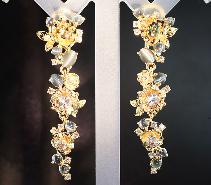 Серьги с хризобериллами с эффектом кошачьего глаза 4,36 карата, александритами 1,73 карата и бриллиантами