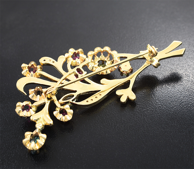 Брошь с александритами 1,44 карата, рубинами и бриллиантами