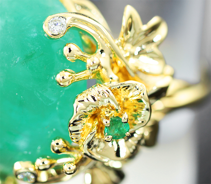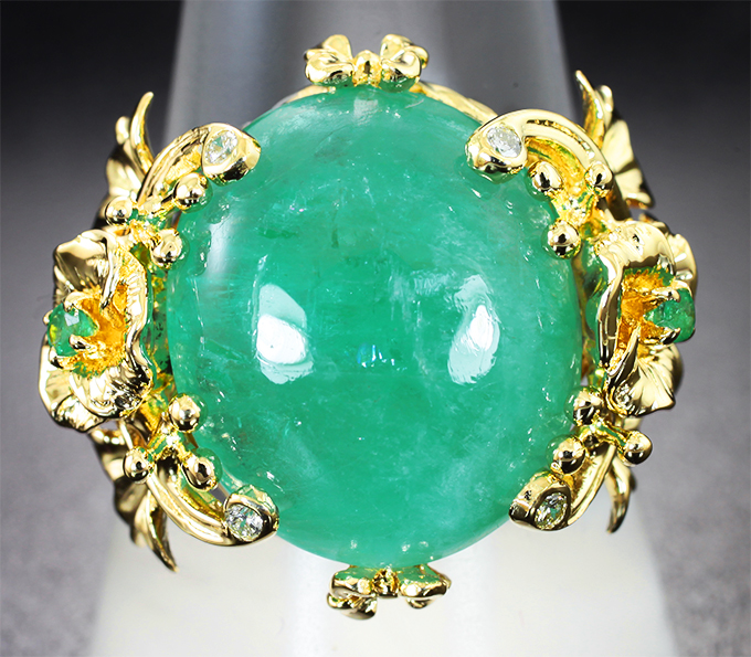 Кольцо с уральским изумрудом 11,97 карата и бриллиантами