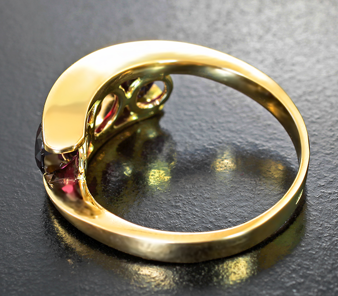 Вашему вниманию предлагается кольцо из желтого золота 585 пробы с красными шпинелями! Ширина площадки 8 мм, высота 5 мм. Вес изделия 5,28 г. Размер 18,5. Ниже приводятся ювелирные характеристики вставок.