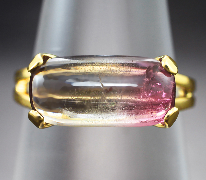 Вашему вниманию предлагается кольцо из желтого золота 585 пробы с полихромным турмалином! Площадка 13 х 6 мм, высота 8 мм. Вес изделия 2,98 г. Размер 15,5. Ниже приводятся ювелирные характеристики вставки.