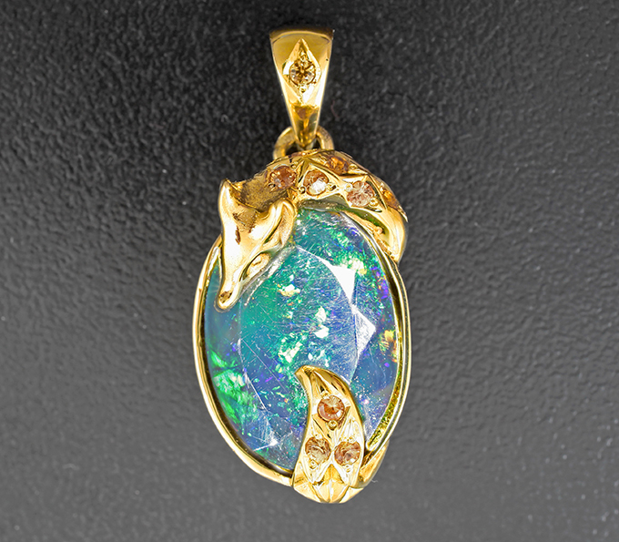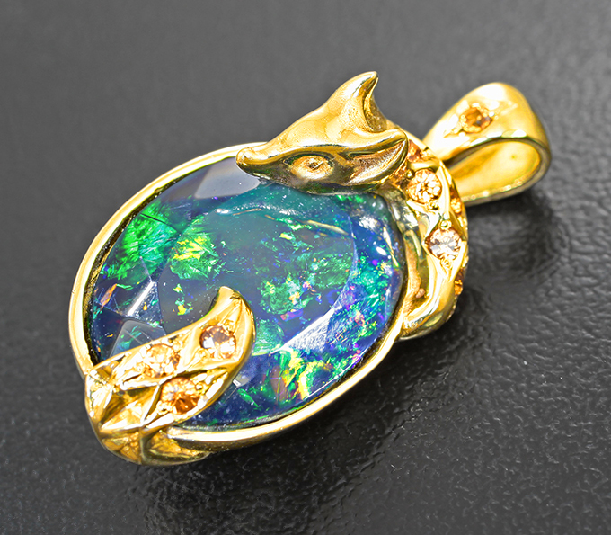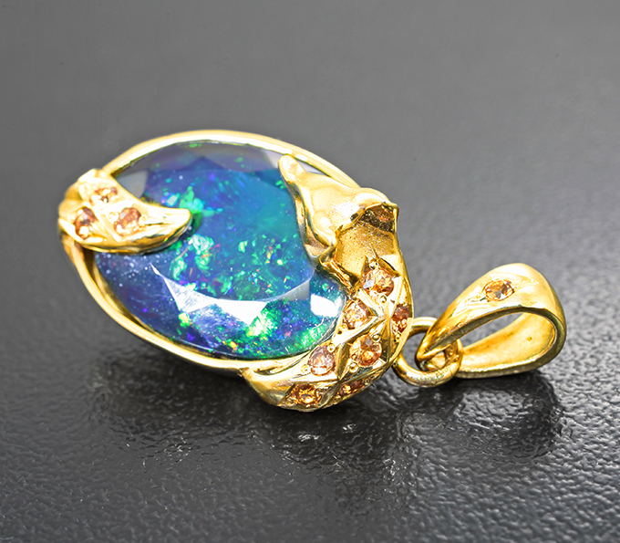 Кулон с ограненным черным опалом 6,25 карата и оранжевыми сапфирами