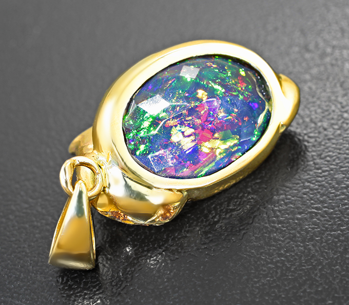 Вашему вниманию предлагается кулон из желтого золота 585 пробы с ограненным черным опалом и оранжевыми сапфирами! Основные цвета опалесценции: желтый, зеленый, синий и фиолетовый. Диаметр дополнительной инкрустации от 1,3 мм до 1,5 мм. Размеры кулон с петлей 32 х 14 мм. Вес изделия 6,04 г. Ниже приводятся ювелирные характеристики.
