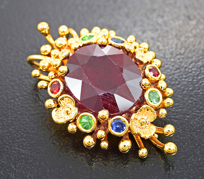 Комплект с рубинами 15,93 карата, красными и синими сапфирами, цаворитами и бриллиантами