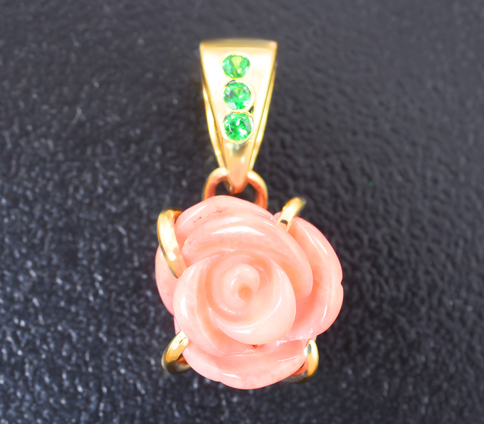 Вашему вниманию предлагается комплект (кольцо + кулон) из желтого золота 585 пробы с резными кораллами 9,85 карата и цаворитами гранатами! Размеры кораллов 10 х 8 мм и 12 х 10 мм, диаметр дополнительной инкрустации 1,5 мм. Вес комплекта 4,47 г.