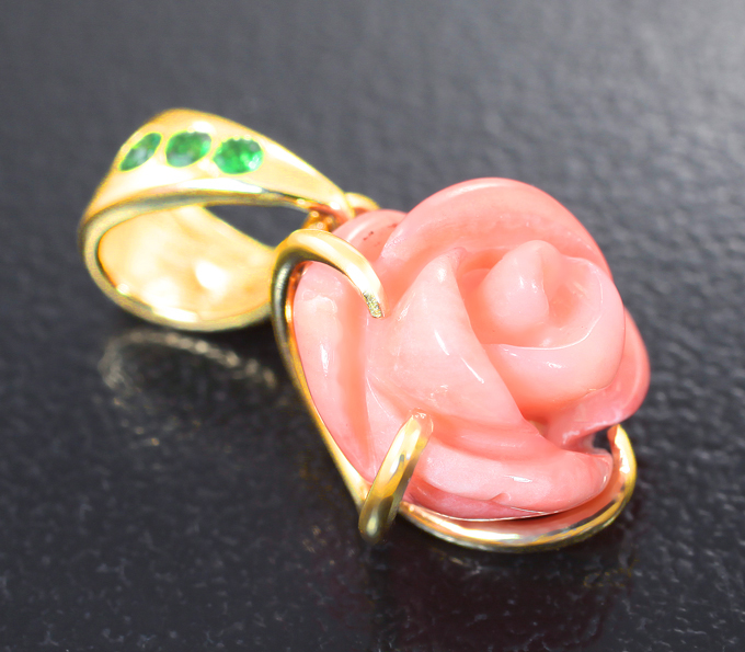Комплект с резными кораллами 9,85 карата и цаворитами