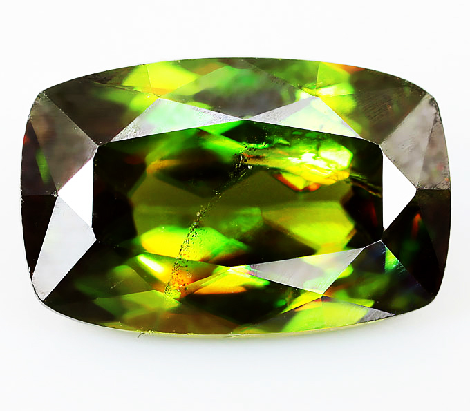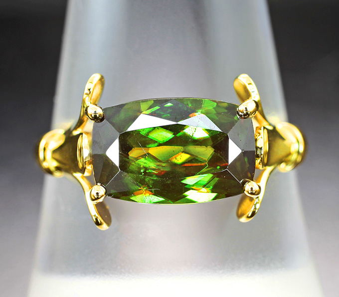 Кольцо с зеленым сфеном высокой дисперсии 3,06 карата