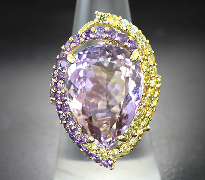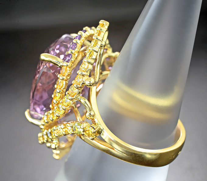 Кольцо с чистейшим аметрином 16,36 карата, аметистами и желтыми сапфирами