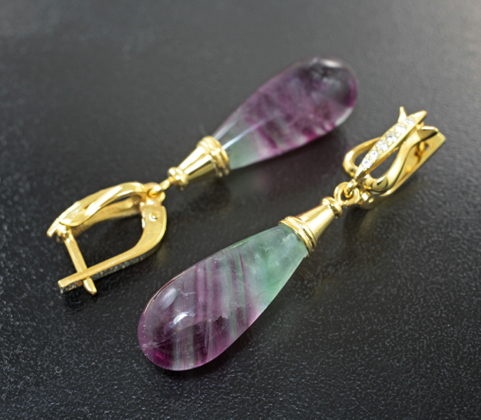 Вашему вниманию предлагаются серьги из стерлингового серебра (925 проба) с полихромными флюоритами и лейкосапфирами! Изделие позолочено. Диаметр дополнительной инкрустации от 1,1 мм до 1,5 мм. Размеры серег с петлей 46 х 10 мм. Вес пары 11,31 г. Ниже приводятся ювелирные характеристики вставок.