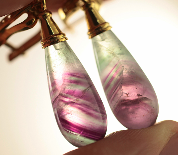 Серьги с полихромными флюоритами 37,84 карата и лейкосапфирами