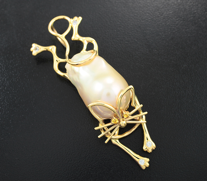 Кулон с морской жемчужиной барокко 40,06 карата, желтыми и бесцветными сапфирами