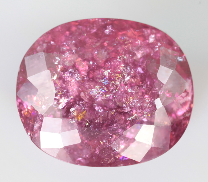 Кулон с крупным розовым турмалином с включениями меди 12,73 карата и бриллиантами