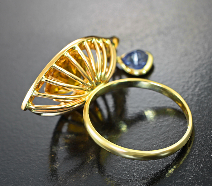 Кольцо с гелиодором 3,46 карата, синим сапфиром и бриллиантами