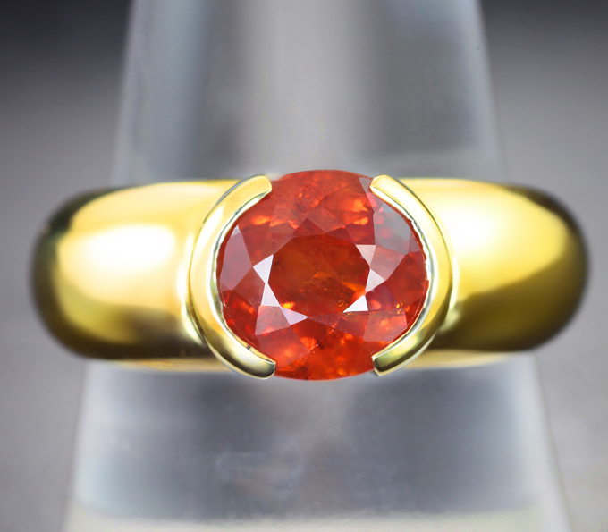 Вашему вниманию предлагается кольцо из желтого золота 585 пробы со спессартином гранатом! Площадка 10 х 8 мм, высота 8 мм. Вес изделия 7,96 г. Размер 18,5. Ниже приводятся ювелирные характеристики вставки.