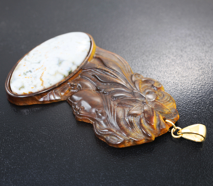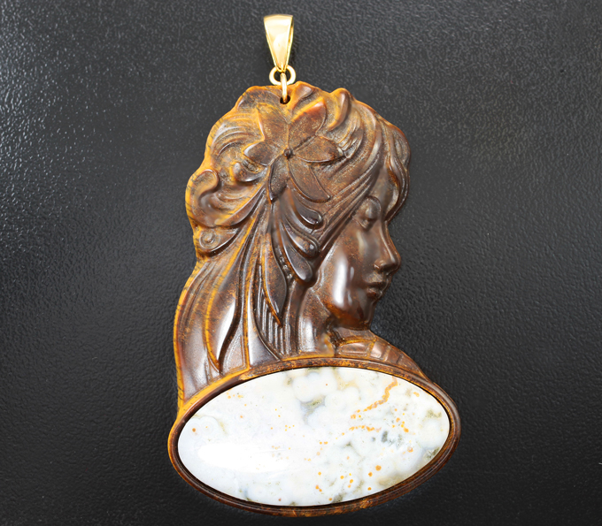 Камея-подвеска «Нимфа» из резного тигрового глаза и яшмы