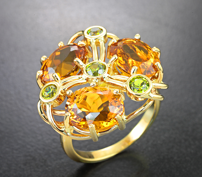 Кольцо с гелиодорами 8,26 карата и демантоидами гранатами