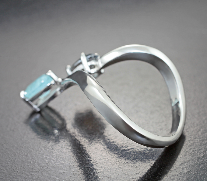 Кольцо с чистейшим платиновым муассанитом топовой огранки 0,86 карата и параиба турмалином 1,13 карата