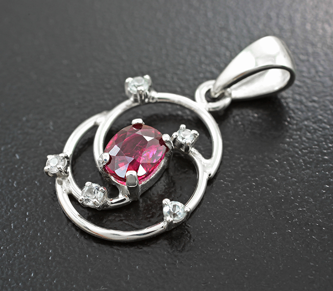 Кулон с рубином 0,99 карата и бесцветными цирконами