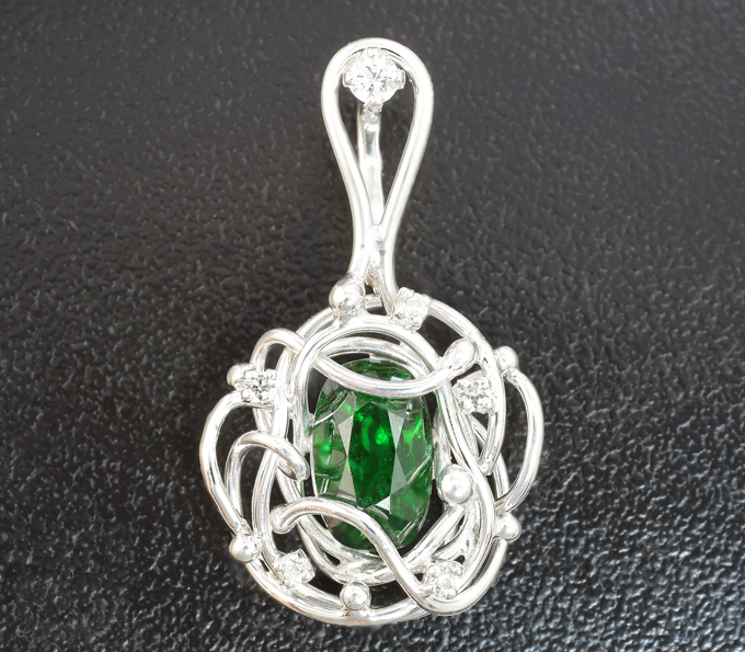 Комплект с крупными насыщенными цаворитами 6,36 карата и бесцветными цирконами