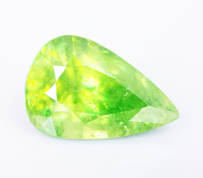 Вашему вниманию предлагается кулон из белого золота 585 пробы с крупным зеленым сфеном! Размеры кулона с петлей 23 х 10 мм. Вес изделия 2,68 г. Ниже приводятся ювелирные характеристики вставки.