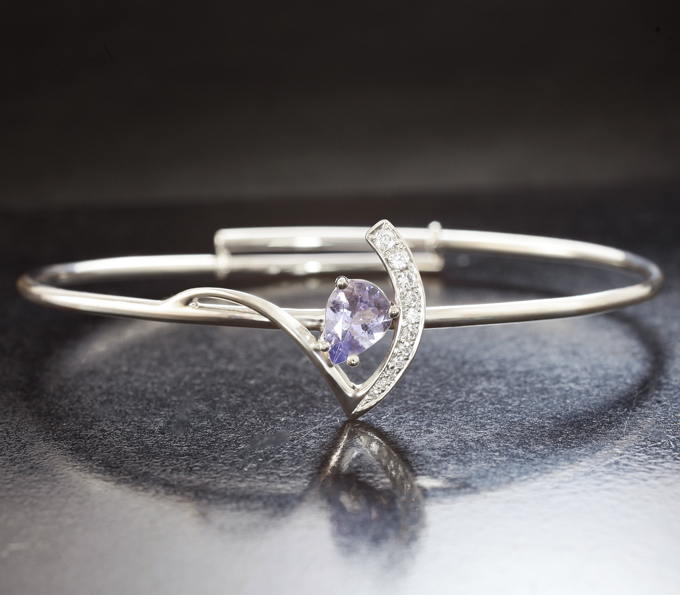 Браслет с танзанитом 1 карат и бесцветными цирконами