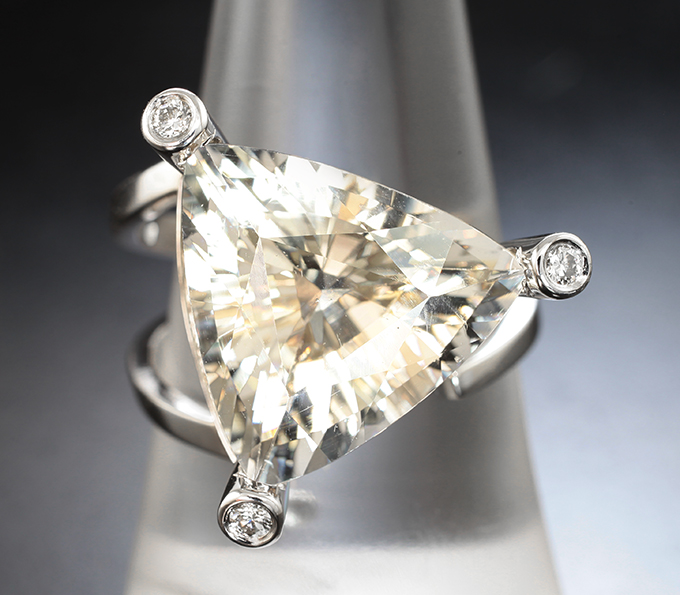 Кольцо с пастельно-желтым бериллом 7,89 карата и бриллиантами