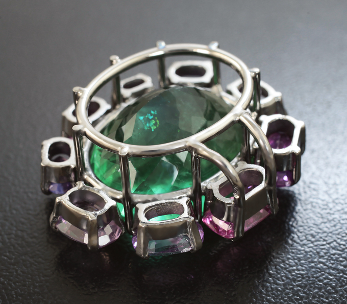 Кулон с с флюоритом 29,02 карата, пурпруными и розовыми сапфирами
