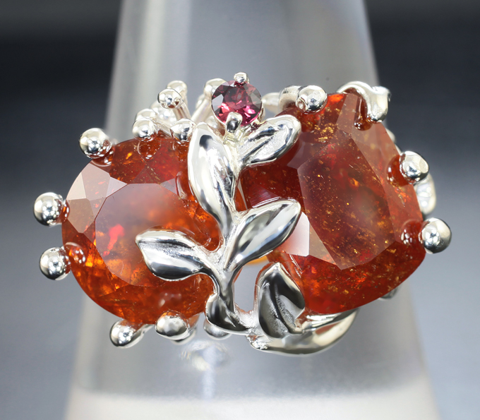 Кольцо с клиногумитами 8,99 карата и красным сапфиром бриллиантовой огранки