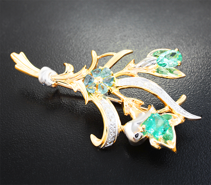 Брошь с уральскими изумрудами 1,89 карата, александритами и бриллиантами