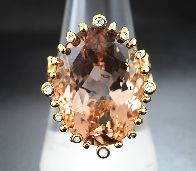Кольцо с морганитом высокой чистоты 20,86 карата и бриллиантами