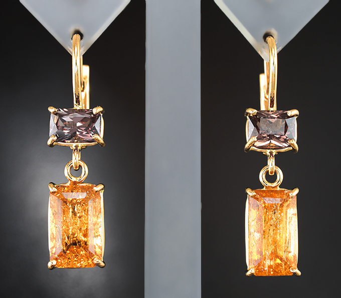 Вашему вниманию предлагаются серьги из желтого золота 585 пробы с империал топазами и гранатами! При смене освещения, гранаты меняют цвет с желто-зеленого на оранжевато-красный. Размеры серег с петлей 35 х 8 мм. Вес пары 6,06 г. Ниже приводятся ювелирные характеристики вставок.