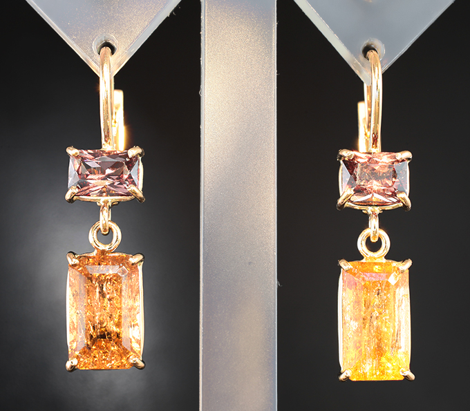 Серьги с империал топазами 8,92 карата и гранатами 2,73 карата