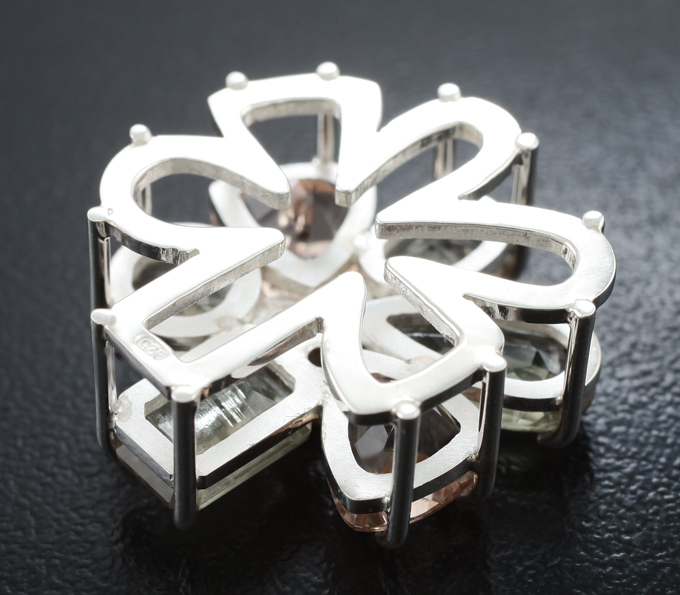 Вашему вниманию предлагается кулон из стерлингового серебра (925 проба) с диаспорами, морганитами, уральскими топазолитами и демантоидом! Площадка кулона 24 х 22 мм. Вес изделия 7 г. Ниже приводятся ювелирные характеристики вставок.