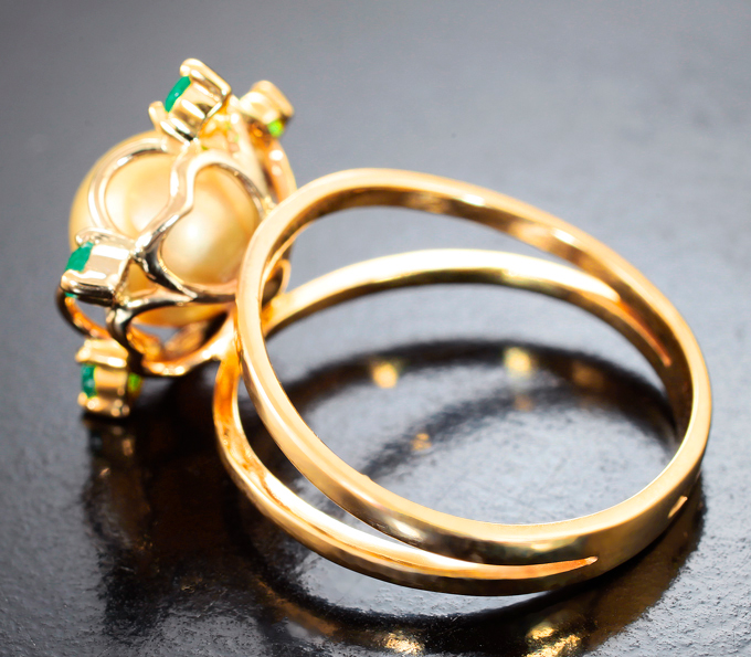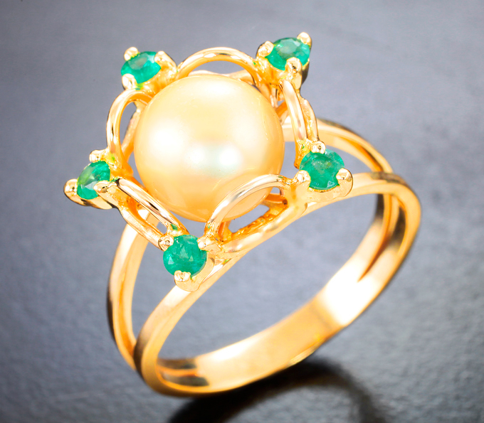 Вашему вниманию предлагается комплект (кольцо + серьги) из желтого золота 585 пробы с золотистым морским жемчугом 14,76 карата и уральскими изумрудами! Диаметр вставок 2,5 мм и 8 мм. Вес комплекта 13,01 г.