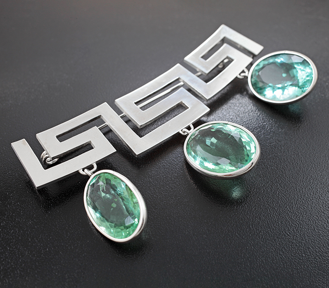 Вашему вниманию предлагается подвеска-брошь из стерлингового серебра (925 проба) с крупными неоново-зелеными флюоритами! Размеры изделия 100 х 52 мм. Вес изделия 45,6 г. Ниже приводятся ювелирные характеристики вставки.