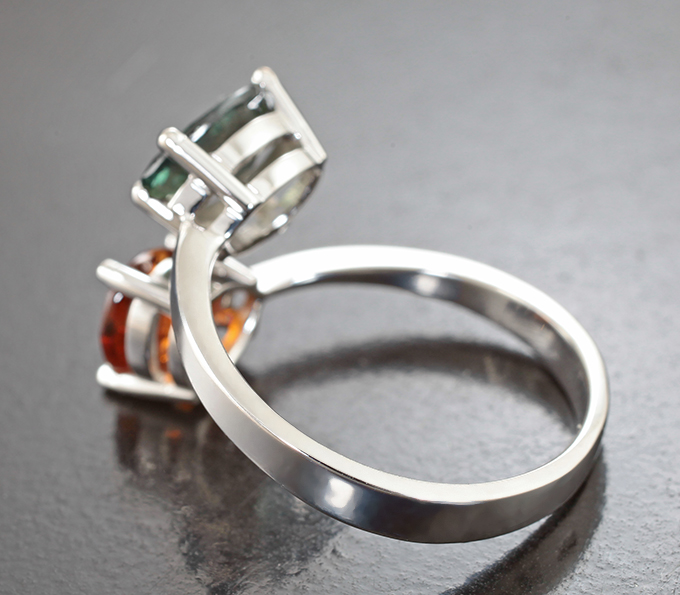 Кольцо cо спессартином 1,73 карата и полихромным сапфиром 1,35 карата