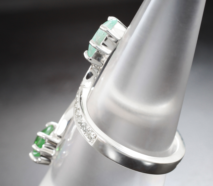 Кольцо с цаворитом гранатом 1,03 карата, параиба турмалином 1,6 карата и лейкосапфирами
