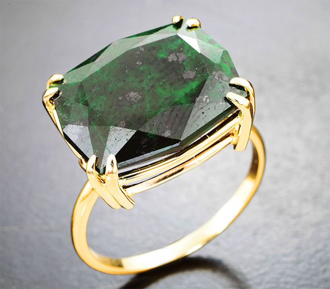 Вашему вниманию предлагается кольцо из желтого золота 585 пробы c крупным мау-сит-ситом! Площадка 16 х 14 мм, высота 8 мм. Вес изделия 5,58 г. Размер 18,5. Ниже приводятся ювелирные характеристики вставки.