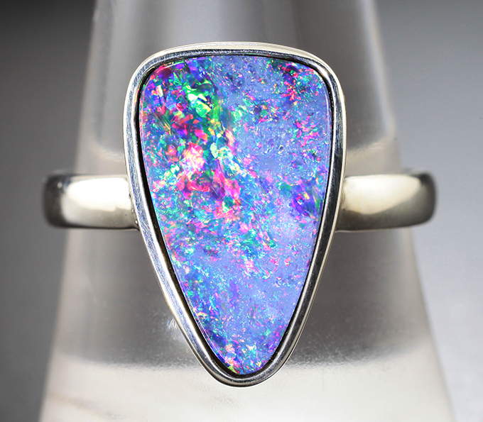 Вашему вниманию предлагается кольцо из стерлингового серебра (925 проба) c австралийским дублет опалом! Основные цвета опалесценции: красный, желтый, зеленый, синий и фиолетовый. Площадка 17 х 11 мм, высота 3 мм. Вес изделия 3,57 г. Размер 18,5. Ниже приводятся ювелирные характеристики вставки.