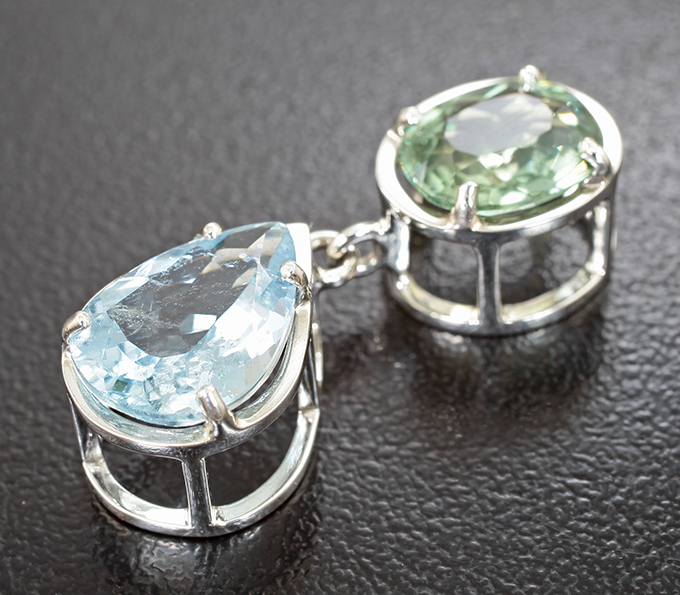 Кулон с мятно-зеленым апатитом 2,43 карата и аквамарином 2,8 карата
