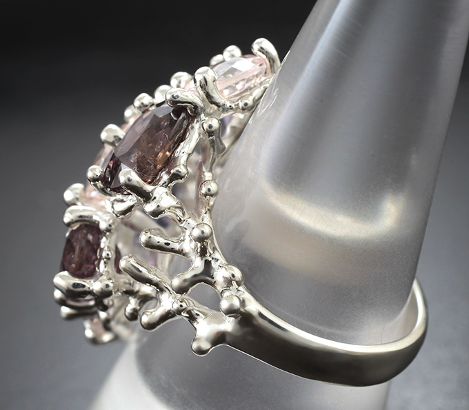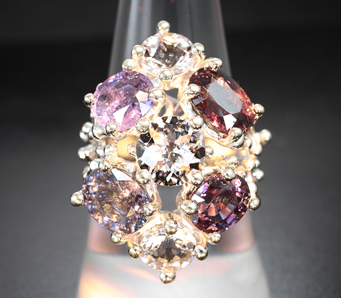 Кольцо с сапфирами со сменой цвета 7,1 карата и морганитами