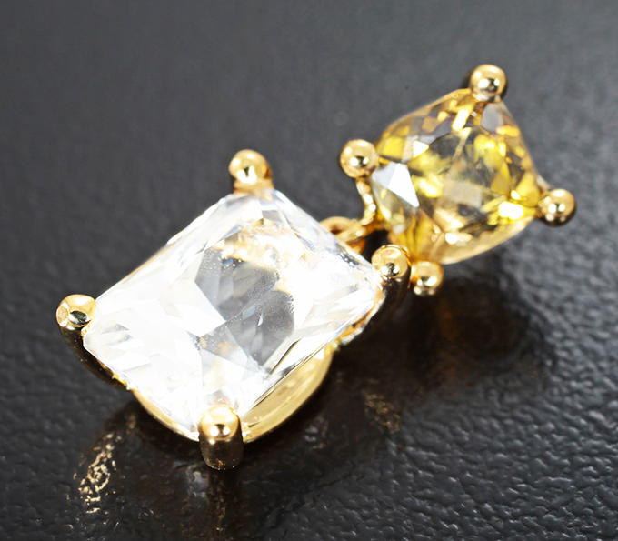Вашему вниманию предлагается кулон из желтого золота 585 пробы с желтым цоизитом и ярким фенакитом! Площадка 21 х 9 мм. Вес изделия 2,39 г. Ниже приводятся ювелирные характеристики вставок.