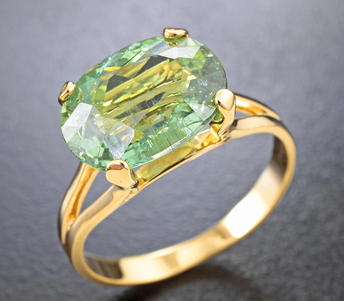 Кольцо с мятно-зеленым апатитом 5,46 карата