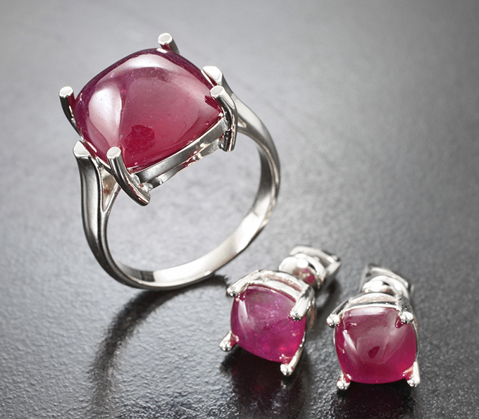 Вашему вниманию предлагается комплект (кольцо + пусеты) из белого золота 585 пробы с рубинами! Вес комплекта 9,49 г.